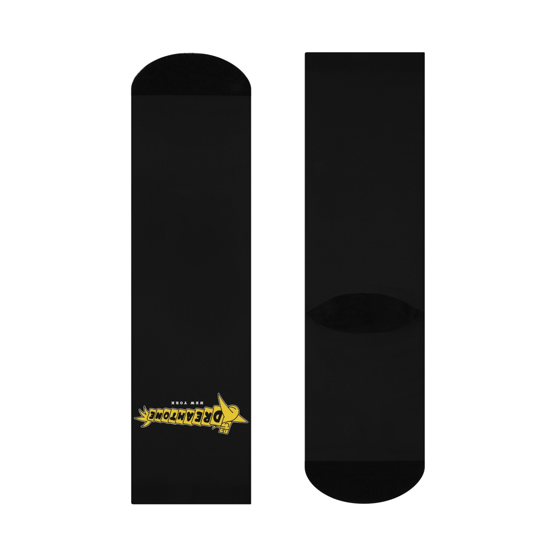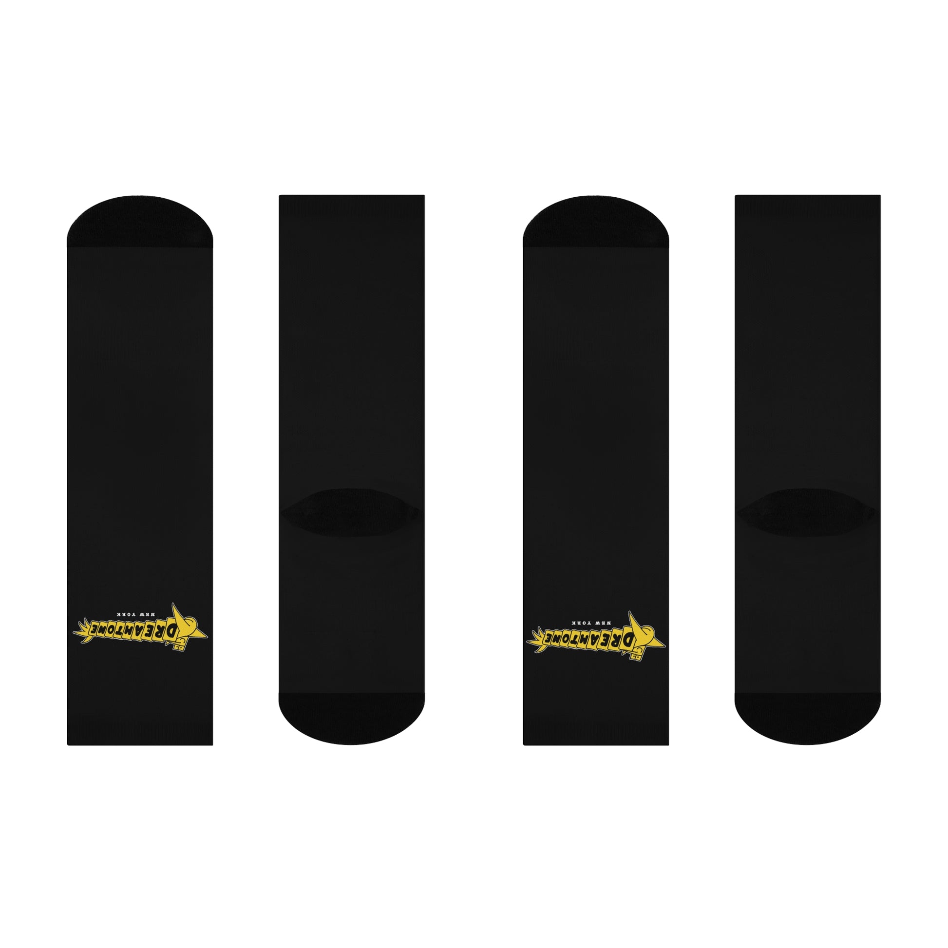 Dreamtome Logo Cushioned Crew Socks — Black Retro Star Graphic